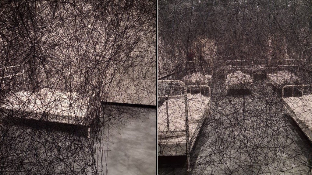 Of the new work During Sleep however, I have lest rust of the spaces and much more the sense of entrapment. I cannot know how this works as a set for a performance pice but the various photographs of theevent seem to show freedoms explouitation and a use of the piece to be about memories – those signs of themselves people leave in beds – even indentations on a mattress, a ruffle of sheets.