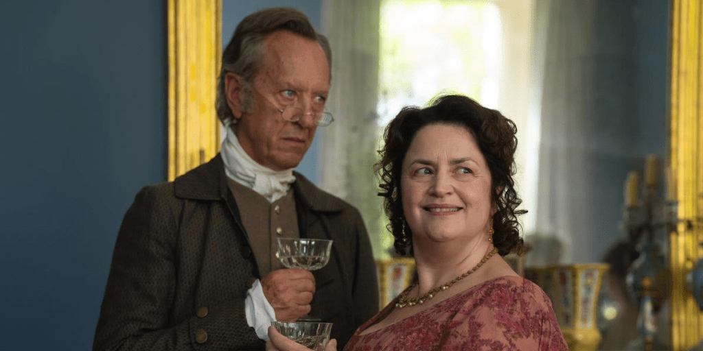 I an ordinary adaptation of the novel Ruth Jones would have stolen all the prizes as Mrs Bennet. However, in this story, Mary takes them off her by her style of resistance – funny and determined.