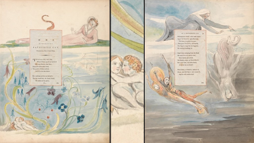 Do you know the poem I refer to in my title? It is by Thomas Gray (he of the infamous Elegy in a Country Churchyard), though now a much lesser known poem than that, if any poem will survive our current culture, Ode on the Death of a Favorite Cat, Drowned in a Tub of Gold Fishes. An exercise in mock-heroic, written for the rich and queer friend, Horace Walpole, by the more humble queer poet and friend, Gray, it told the story of a vain cat (anthropomorphised, because vanity is hardly a feline quality even if projected as such) and the fate to which her initial vanity led her. Pretending to morality, being a caution against both vanity and the greed to which, in the poem it becomes allied, it is really little more than a piece of misogyny dressed up in a moral and epic coat. Gray called the ‘favourite’ cat, presumably the favourite of the children Tom and Susan who are in the poem only in that they neglected to care for Selima as they should and thence might be though ‘cruel’. Yet Gray spends much more time in picturing Selima not as an animal per se but as a symbol of her sex/gender, and the exemplar of the ‘frailties’ of that sex/gender classification. Selima finds in this poem that her desires over-reach her caution in a dangerous situation and she dies as a result, not so much pitied and mourned as ridiculed. Here is the poem:
