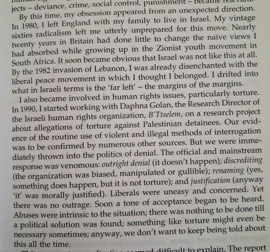Here is Cohen’s story that explains how early beliefs fostered in the Zionist youth movement in South Africa fared when he himself became an Israeli Jew, learning about the use of torture specifically on Palestinians in the 1980s Lebanon War. It is as far as I have got with the book yet.
